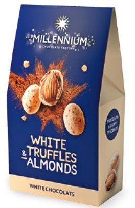 CANDIES MILLENNIUM "WHITE TRUFF". Biele pražené mandle s bielou čokoládou, s mandľovou príchuťou.