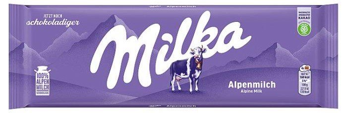Milka Alpenmilch mliečna čokoláda - 270 g Milka Alpenmilch je lahodná, v ústach sa rozplývajúca čokoládová pochúťka vyrobená zo 100% alpského mlieka - klasika pre všetkých fanúšikov čokolády Zloženie: Mliečna čokoláda. Zloženie: cukor, kakaové maslo, sušené odstredené mlieko , kakaová hmota, sladká sušená srvátka ( mlieko ), maslový tuk , emulgátor ( sójový lecitín ), lieskové orechy , aróma. Kakao: minimálne 30 %. Môže obsahovať iné orechy a pšenicu. Môže obsahovať iné orechy. Alergény sú vyznačené v zložení hrubším písmom. Nutričné hodnoty (na 100 g) Energia 2221 kJ / 371 kcal Tuky 29,0 g : z toho nasýtené mastné kyseliny 17,0 g Sacharidy 59,0 g : z toho cukry 59,0 g Bielkoviny 6,1 g Soľ 0,27 gZloženie: