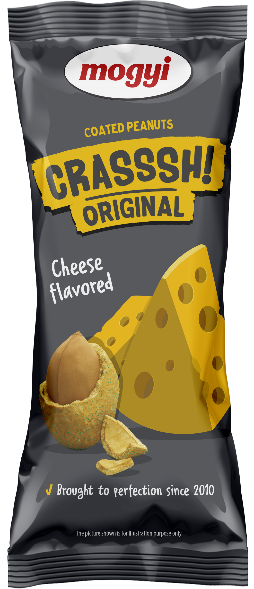 43,5 % ARAŠIDY, 43,5 % obaľovacie cestíčko (PŠENIČNÁ múka, ryžová múka, škrob, cukor, jedlá soľ), palmový olej, korenie so SYROVOU príchuťou 3,3 % (jedlá soľ, cukor, sušená SRVÁTKA, 6,3 % syrový prášok, zvýrazňovače chuti (glutaman sodný, disodná soľ guanylát, inozinát disodný), korenie, arómy (môže obsahovať MLIEKO), potravinárska kyselina (kyselina citrónová), koreniace extrakty). Môže obsahovať stopy iných ORECHOV.