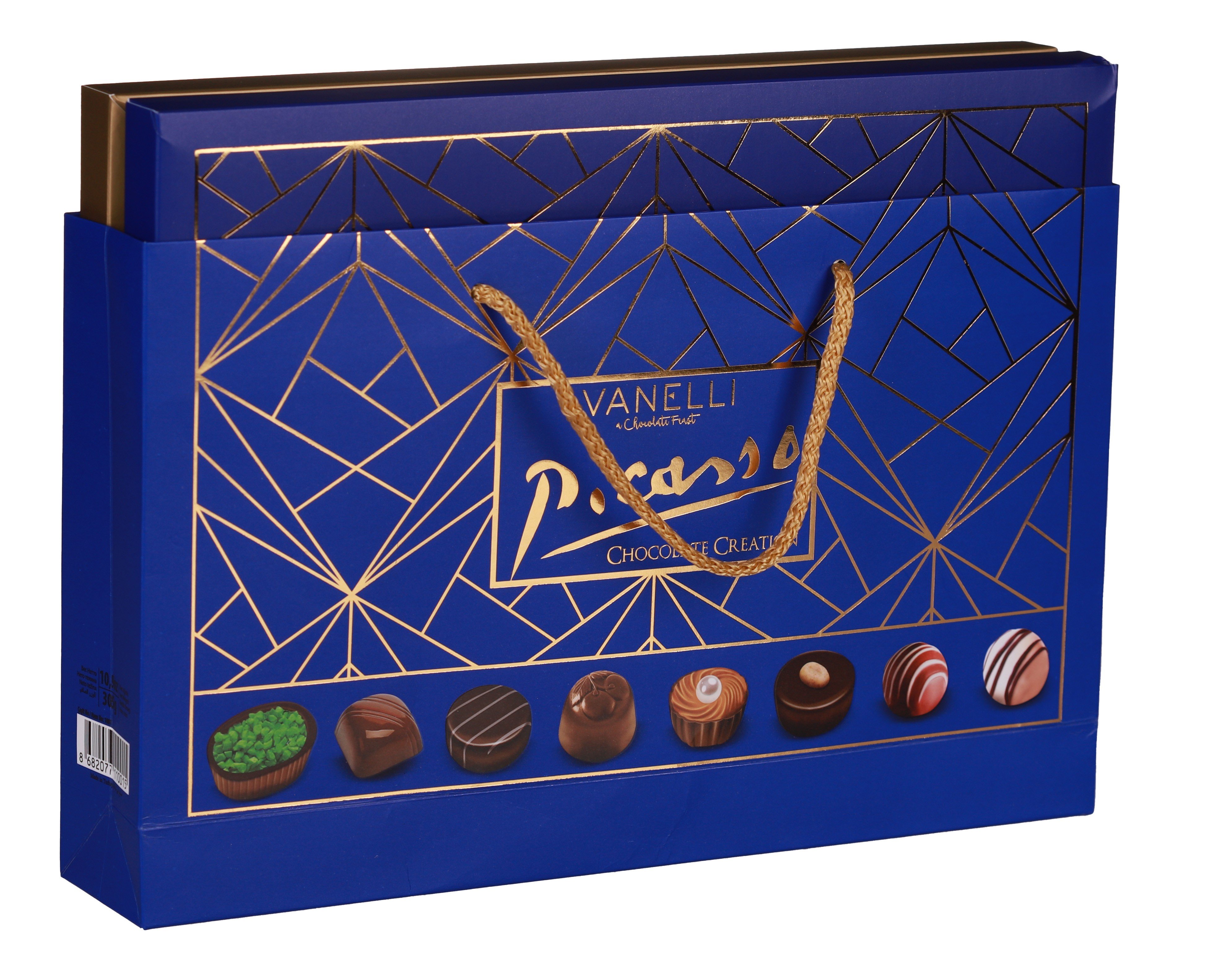 Darujte umenie skryté v čokoláde! Zmes plnených čokoládových praliniek v darčekovom balení.Zloženie: