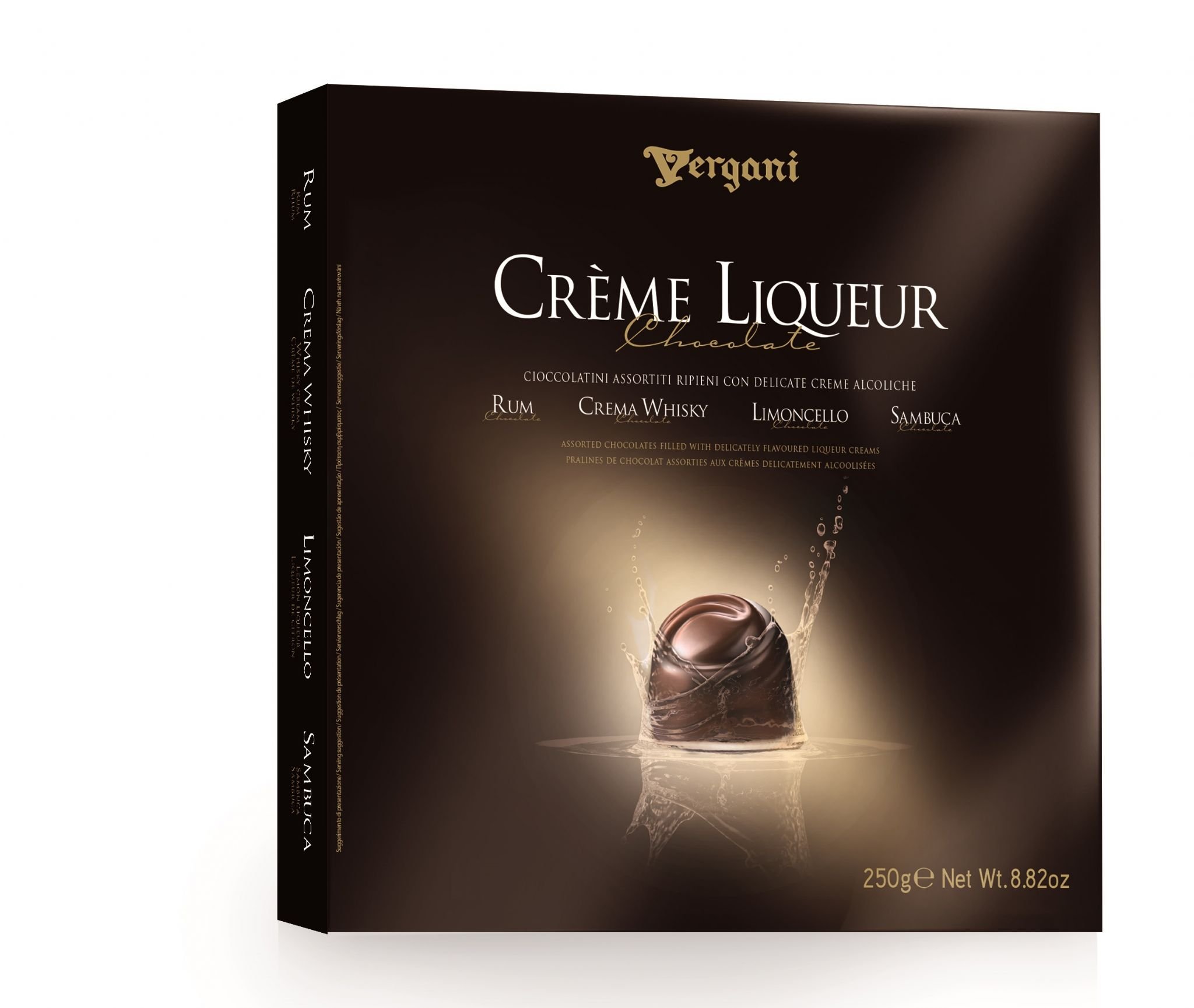 Čokoládové pralinky plnené krémom LIMONCELLO, RUM a WHISKY (45%)Cukor, kakaová hmota, glukózovo-fruktózový sirup, kakaové MASLO, rastlinné tuky (palmový, z palmových jadier, kokosový), sušené plnotučné MLIEKO, likér Limoncello (6,8% aróma Limoncello: alkohol, voda, citrónová kôra, aróma), Rum (6,6% aróma Rum), zvlhčovadlo: sorbitolový sirup, odtučnený kakaový prášok, odstredené sušené MLIEKO, Whisky (2,3% aróma Whisky), karamelizovaný cukor, arómy, plnotučné MLIEKO, sušená SRVÁTKA, emulgátor: SÓJOVÝ lecitín. Môže obsahovať stopy ŠKRUPINOVÝCH PLODOV, PISTÁCIÍ A OBILNÍN (LEPKU). Kakaová sušina: najmenej 30% v mliečnej čokoláde (Whisky) 52% v horkej čokoláde (Limoncello, Rum).