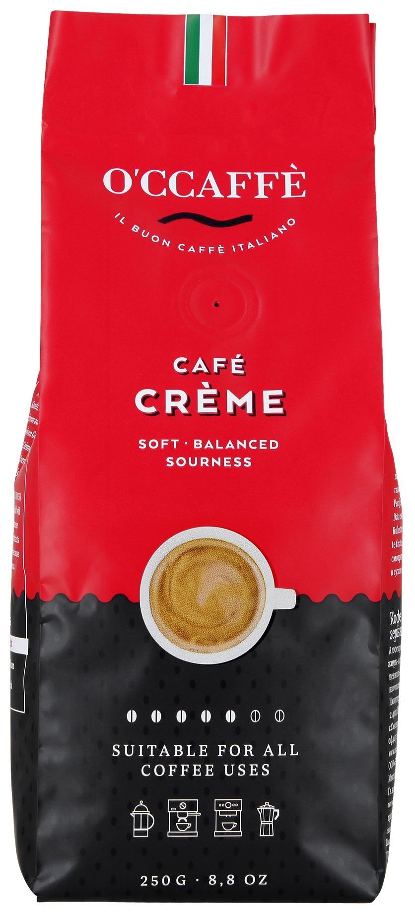 Pražená zrnková káva O’CCAFFÉ Café Creme (Cafe creme rosso) je exkluzívna kávová zmes 50% Robusty a 50% Arabiky. Je spojením prvotriednej odrody kávových zŕn a pražiarenských skúseností rodinného dedičstva. Kombináciou pomeru 50 / 50 vznikla komplexná zrnková káva s vyváženou chuťou zmesí . Základom týchto druhu káv sú dlhoročné priateľské vzťahy s dodávateľmi kvalitnej suroviny v podobe zelených kávových zŕn Robusty a Arabiky pochádzajúcich z Indií a Vietnamu pre odrodu Rousty a Etiópie pre odrodu Arabiky. Výsledkom tajného rodinného receptu praženia tak vzniká krémová, delikátna, zamatová a aromatická káva s náznakom čokolády, ktorá predstavuje komplexnú vyváženú zmes, ktorá sa rokmi viac a viac zušľachťovala. Café Creme Vás osloví svojou zamatovou penou, chuťou a jemnosťou.