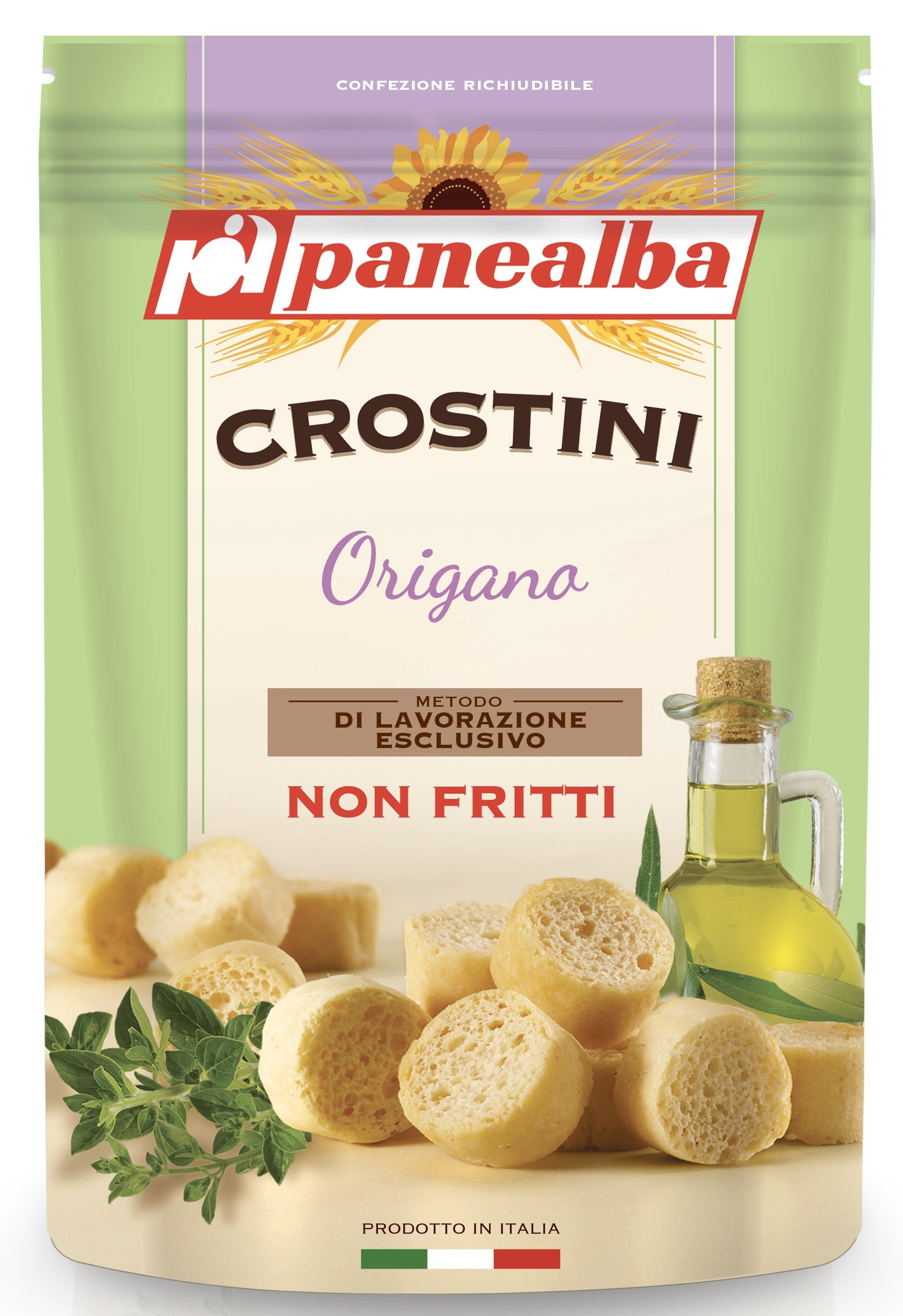 Krutóny s oreganom. Pekársky výrobok. Hmotnosť: 100 g. Zloženie: PŠENIČNÁ múka, olivový olej 12,9%, palmový olej, kvasnice, jedlá soľ, PŠENIČNÁ sladová múka, oregano 1%. Môže obsahovať SEZAMOVÉ semienka, HORČICU a SÓJOVÉ bôby. Minimálna trvanlivosť do konca: viď dátum dotlačený na obale. Skladujte na suchom mieste, mimo zdrojov tepla. Po otvorení: Skladujte na chladnom a suchom mieste, mimo zdrojov tepla a urýchlene skonzumujte. PANEALBA S.R.L. VIA DEL LAVORO 22 - 12062 CHERASCO (CN), TALIANSKO Výživové údaje na 100 g: Energia 1961 kJ/ 467 kcal, Tuky 19g z toho nasýtené mastné kyseliny 4,4g, Sacharidy 61g z toho cury 3,4g, Bielkoviny 11g, Soľ 2,4gZloženie: