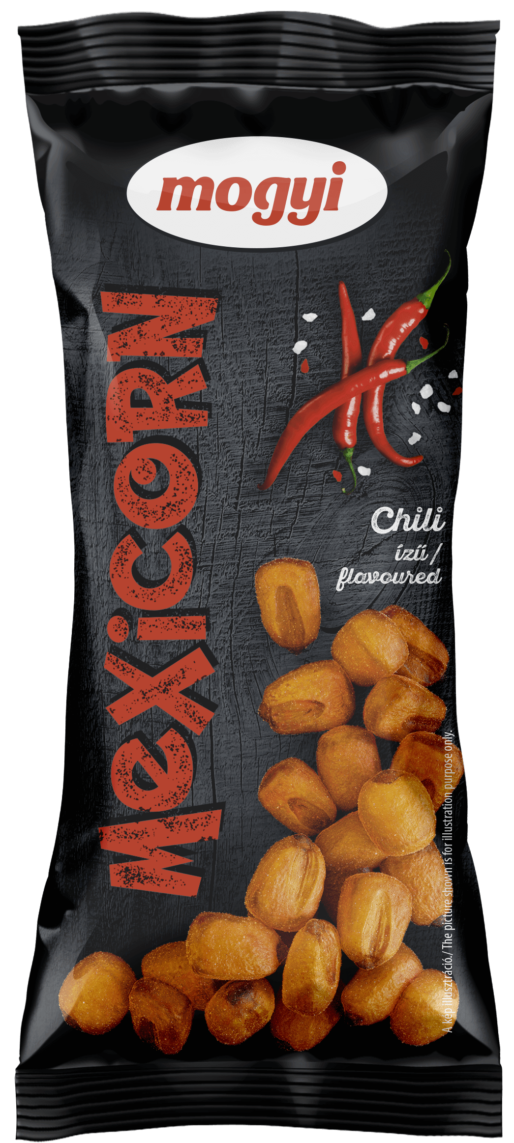 Mogyi pražená kukurica s príchuťou chilli.Zloženie: