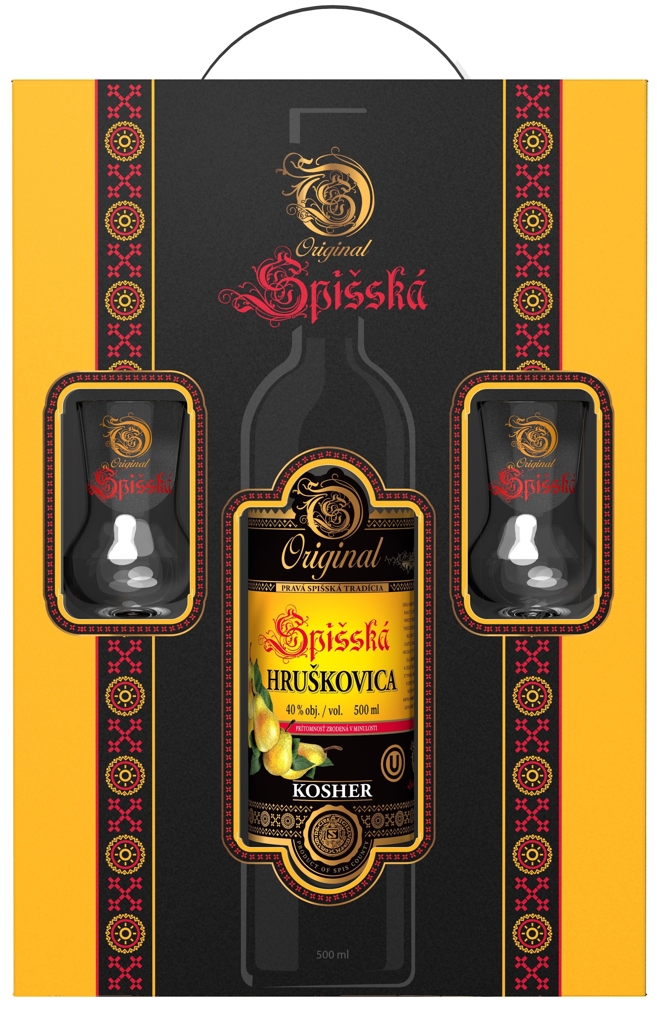 Toto darčekové balenie obsahuje fľašu Spišskej Hruškovice a dva originálne poháre, čo z neho robí ideálny darček pre milovníkov tradičných slovenských destilátov alebo vhodnú voľbu na oslavy a spoločenské príležitosti.