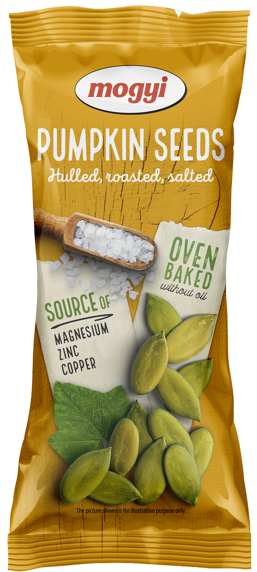 Mogyi pražené tekvicové semienka, solené, lúpané.