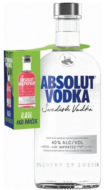 Vodka Absolut 40% 0,7L + Miniatúrka Absolut Grapefruit 40% 0,05L