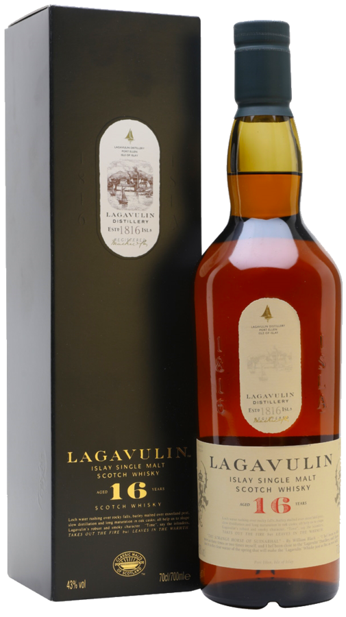 Lagavulin jednosladová 16 ročná whisky, z ostrova Islay, je prvotriednym reprezentantom tohto regiónu. Lagavulin má jantárovú farbu. Vo vôni nájdeme tóny masívne rašeliny, ovocného sherry, vanilky. Vôňa je skvele vrstvená. Výrazná chuť s dotekem rašeliny a jódu, ktorý je doplnený arómou dubu. Záver zaujme štipkou korenia, vanilky a sušeným ďatľami. V našich podmienkach najpredávanejšie singlemalt, ktorý vyhľadávajú milovníci aromatických whisky.