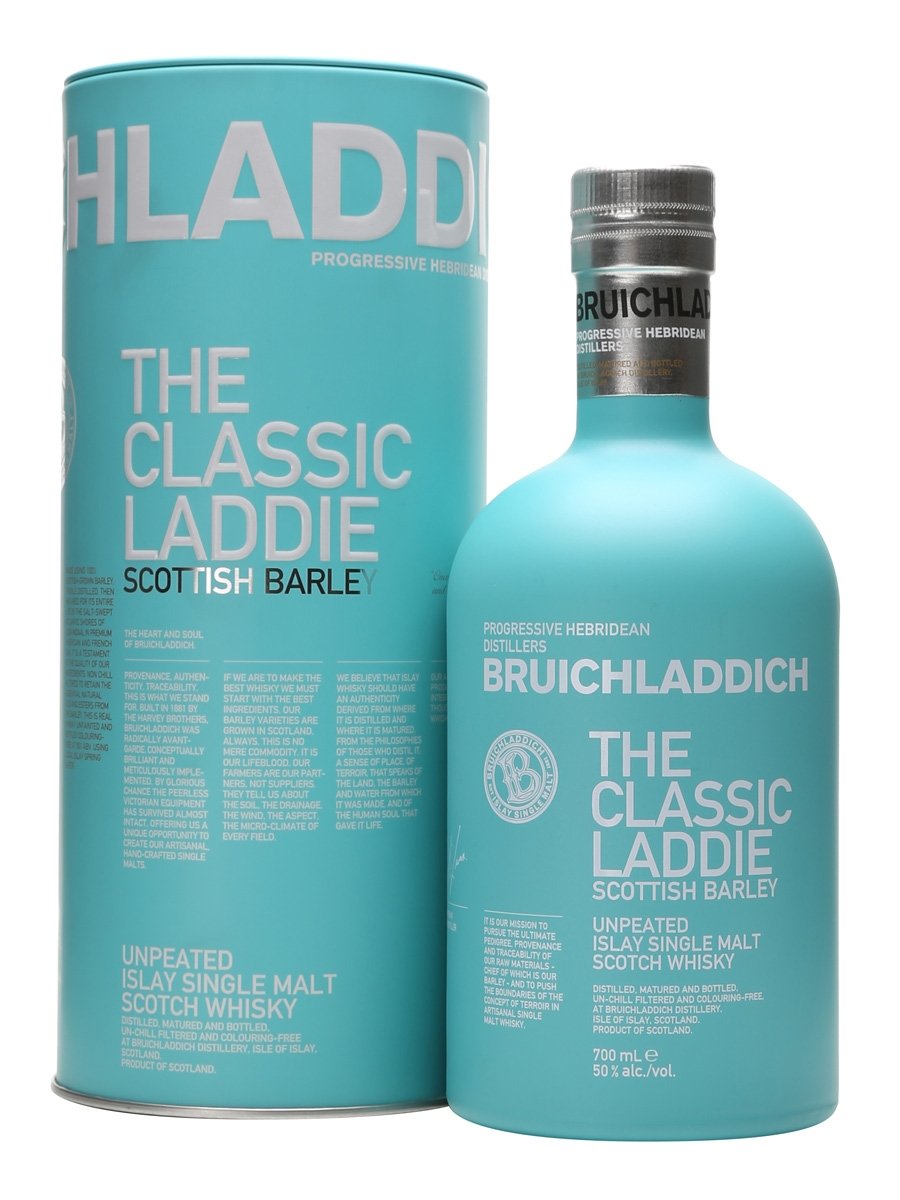 Bruichladdich Scottish Barley The Classic Laddie vytvoril majster liehovarníka Jim McEwan z jednotlivo vybraných sudov za účelom toho, aby vynikol klasický a elegantný štýl pálenice Bruichladdich. Táto whisky je vyrobená 100% zo škótskeho jačmeňa, pomaly destilovaná a po celú dobu zrela na brehoch jazera Lochindaal v kvalitných sudoch z amerického dubu. Jedná sa o whisky absolútne bez rašelinového charakteru a vyjadruje všetko, čím Bruichladdich je - teda autentickosť, kvalitu surovín a miestne terroir. Aróma: Sladká vôňa s náznakom mäty prechádzajúca do tónov čerstvo rezaných lúčnych kvetov Chuť: Na začiatku chuť sladkého dreva a jačmeňa, v závere ucítite kombinácii zrelého ovocia a trstinového cukru.