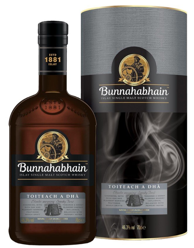 Bunnahabhain Toiteach A Dha je škótska single malt whisky z ostrova Islay, vyrobená z rašelinou zadymeného jačmenného sladu. Toiteach A Dha (vyslovuje sa Toch-ach ah-ghaa) v škótskej galčine znamená "Zadymená dvojka." Táto whisky je totiž pokračovaním zadymenej rašeliny v kombinácii s jemným single maltom Bunnahabhain. Jej chuť ovplyvnilo zrenie v amerických dubových sudoch po bourbone, no výrazný charakter získala práve vďaka zreniu v európskych sudoch po sherry. Nefiltrovaná a nedofarbovaná whisky vo svojej prirodzenej podobe. Fľašovaná s 46,3 % obsahom alkoholu a balená v elegantnej darčekovej tube.